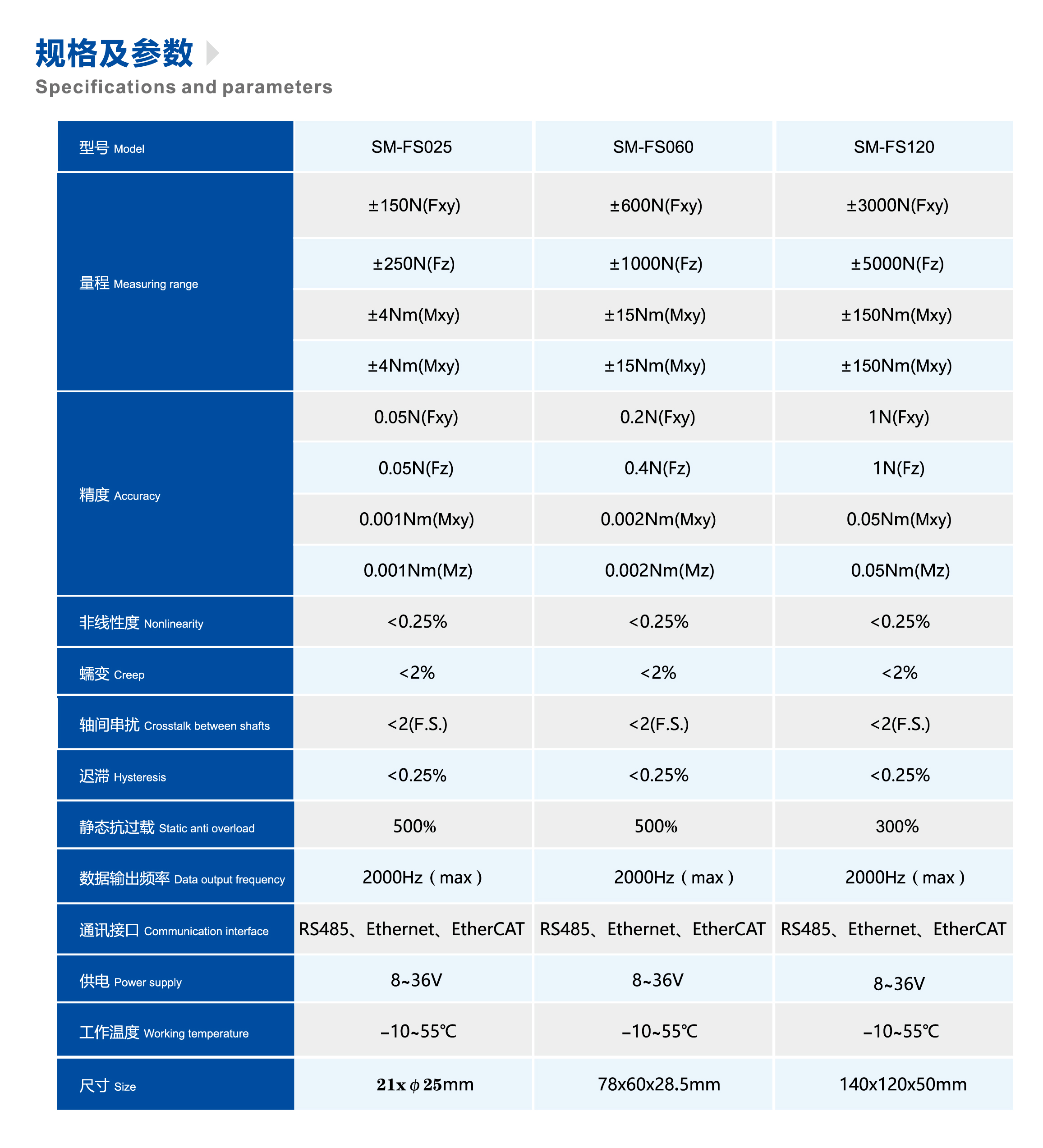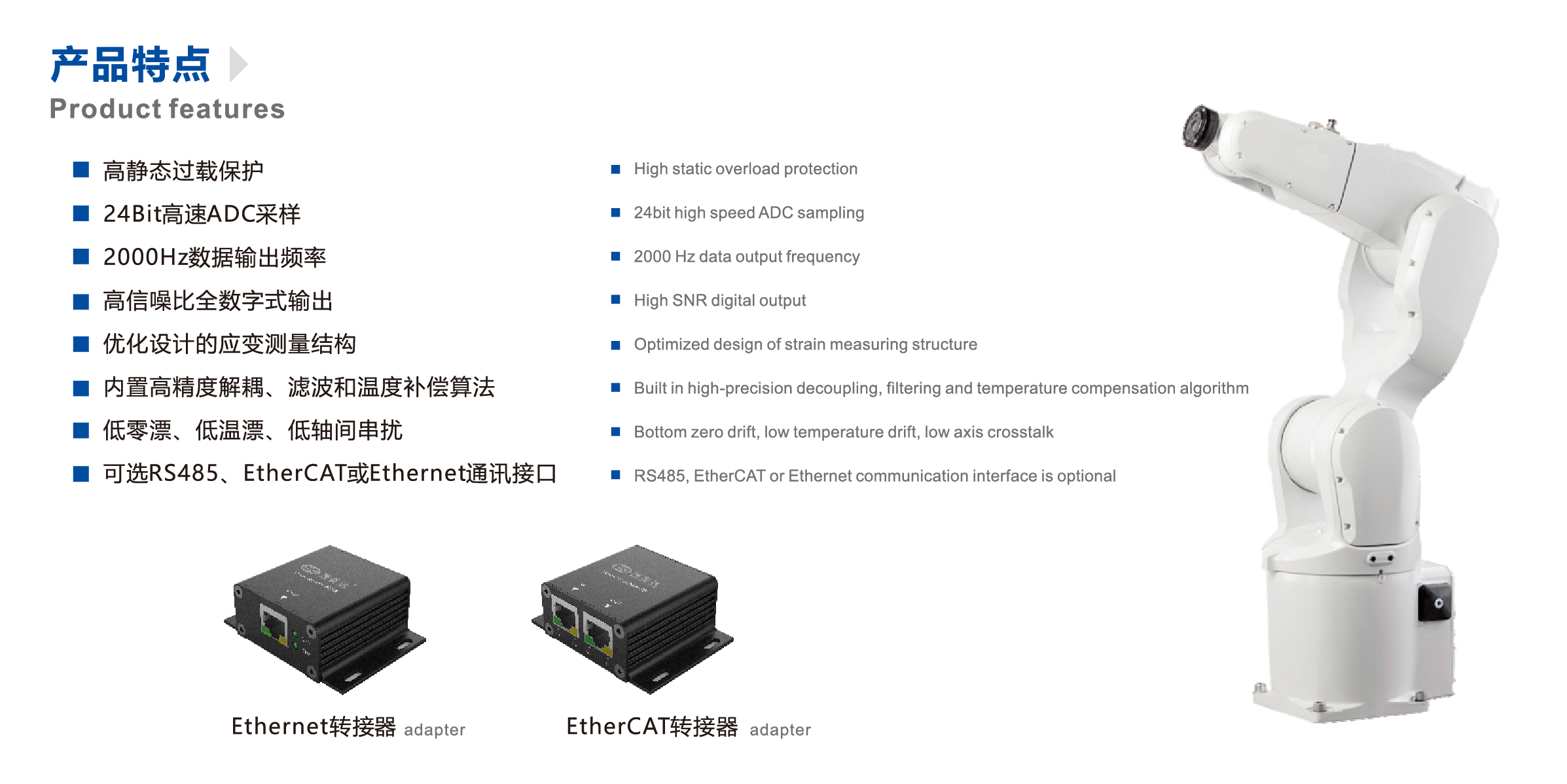 ?控傳感器可實(shí)時(shí)測(cè)量XYZ三個(gè)?向所受到的力和力矩。高精度應(yīng)變計(jì)及結(jié)構(gòu)設(shè)計(jì)實(shí)現(xiàn)了更高的信噪比和靈敏度,內(nèi)置溫度補(bǔ)償算法大大降低了由溫度變化導(dǎo)致的溫度漂移。六維力傳感器應(yīng)用于工業(yè)機(jī)器人、協(xié)作機(jī)器人、外骨骼機(jī)器?、醫(yī)療康復(fù)機(jī)器人、柔性夾爪和機(jī)器人關(guān)節(jié)、自動(dòng)化測(cè)量、控制及風(fēng)洞測(cè)試等。