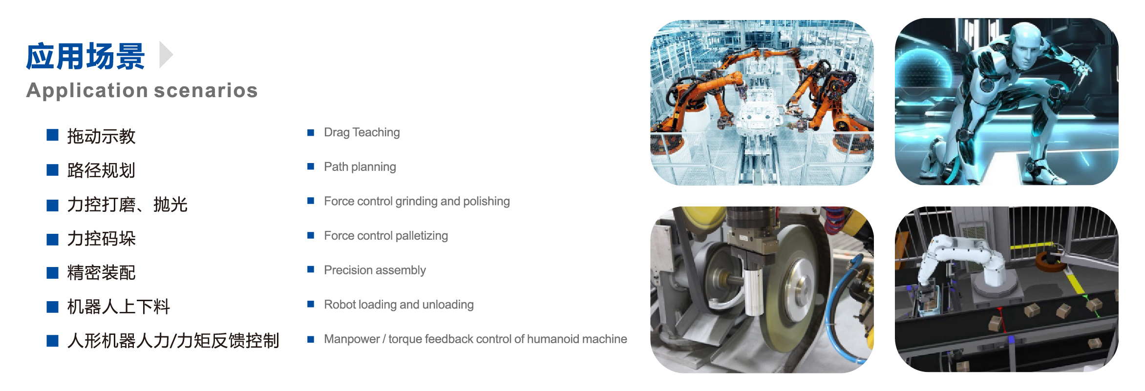 應(yīng)用于工業(yè)機(jī)器人、協(xié)作機(jī)器人、外骨骼機(jī)器人、醫(yī)療康復(fù)機(jī)器人、柔性夾爪和機(jī)器人關(guān)節(jié)、自動(dòng)化測(cè)量、控制及風(fēng)洞測(cè)試等。