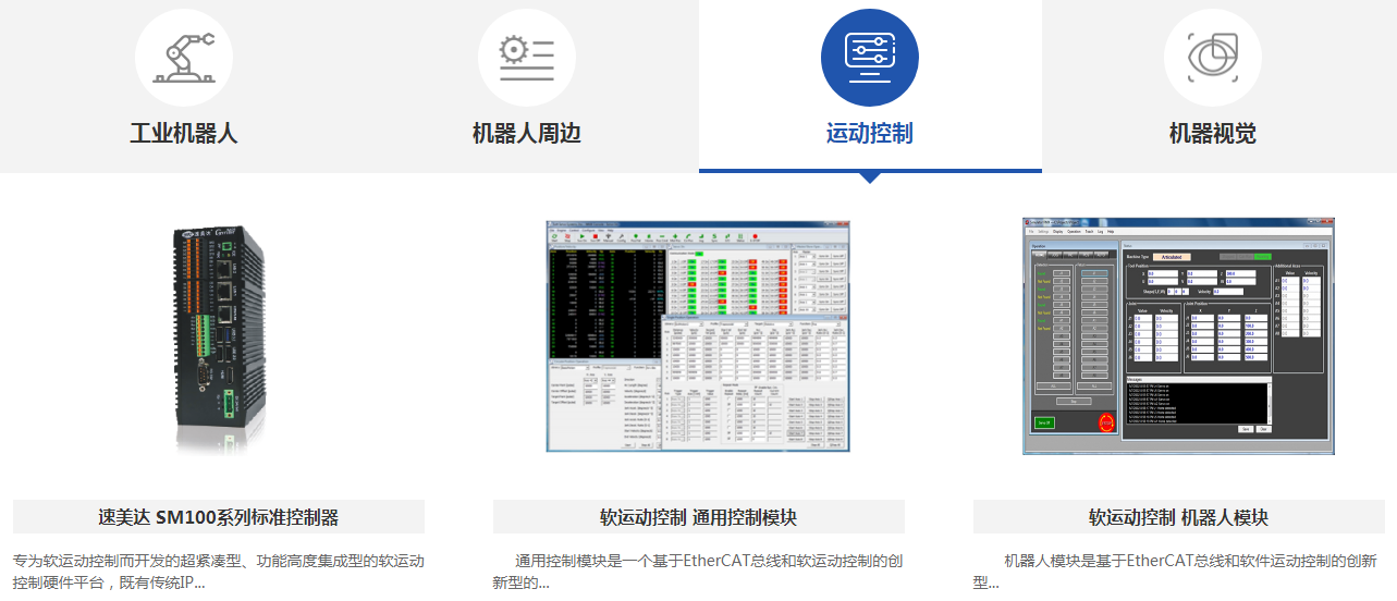 全新網(wǎng)站將速美達各系列產(chǎn)品線進行全方位展示,將工業(yè)機器人、機器人周邊產(chǎn)品、運動控制產(chǎn)品、機器視覺產(chǎn)品、工業(yè)互聯(lián)網(wǎng)產(chǎn)品進行詳盡的介紹。同時,推出多樣化的機器視覺定位、檢測系統(tǒng),還有全新的EtherCAT網(wǎng)絡(luò)運動控制平臺,為您的高效生產(chǎn)提供更可靠的方法。