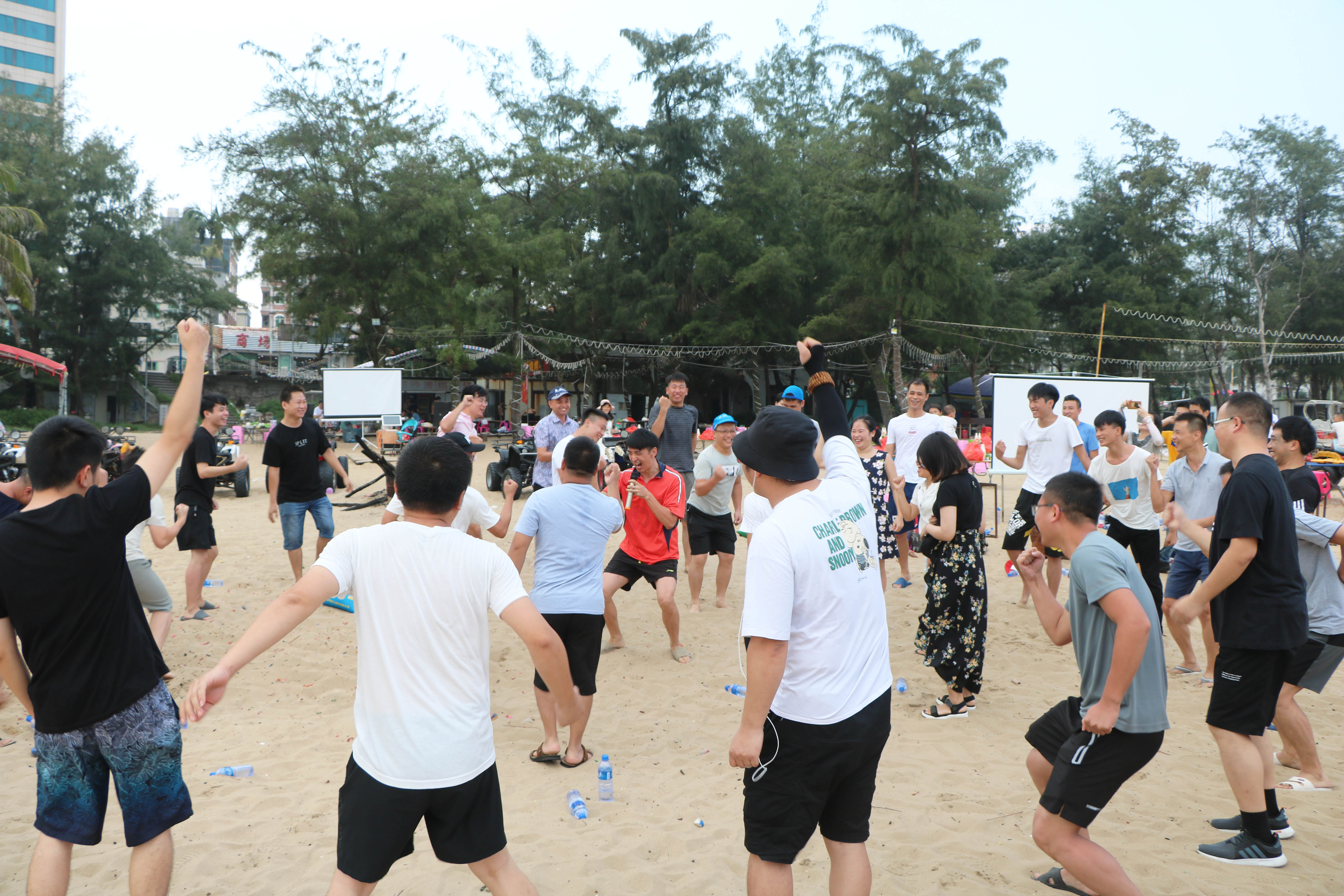 第二個項目是“袋鼠跳”,一個考驗速度和體力的項目,每個隊伍派出10個人,互相2頭接力,雖然很累,但是大家的臉上都洋溢著笑臉,最后在一片歡聲笑語中結(jié)束了活動。