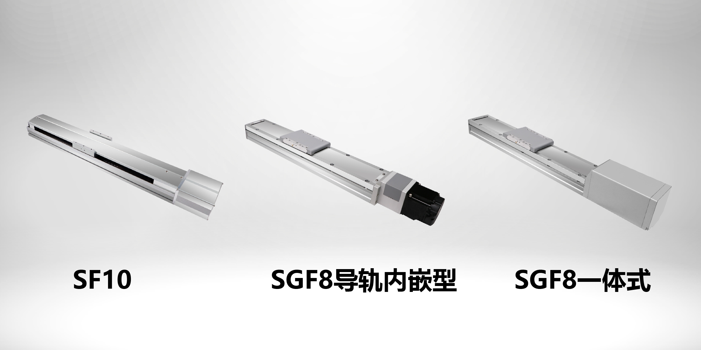 SF標準絲桿型、SGF導(dǎo)軌內(nèi)嵌型以及全新升級的內(nèi)置驅(qū)控一體型 SGF8。