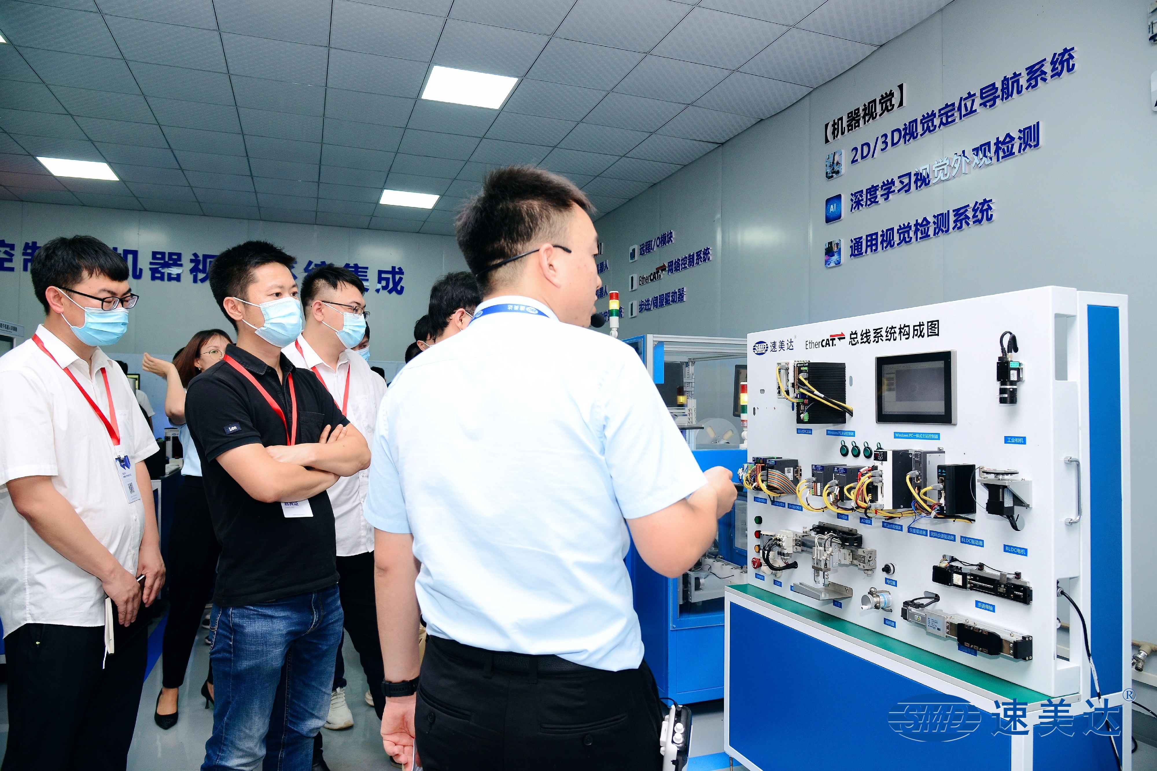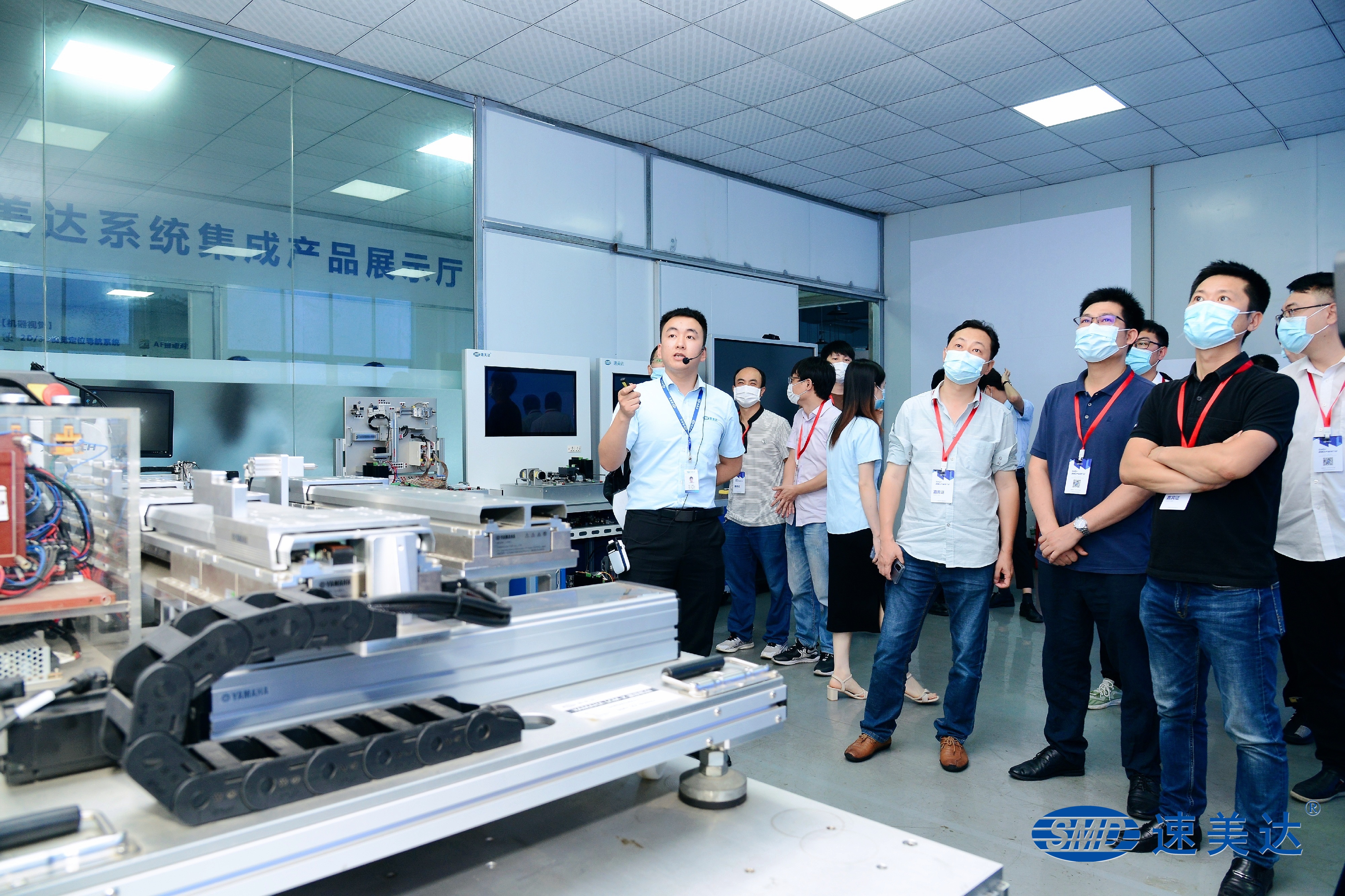 當(dāng)天下午,客戶陸續(xù)來到速美達(dá)東莞長(zhǎng)安運(yùn)營(yíng)總部,依次參觀系統(tǒng)集成展廳、機(jī)器人培訓(xùn)室、設(shè)備展廳以及系統(tǒng)集成測(cè)試區(qū)。展廳講解員向客戶重點(diǎn)介紹了速美達(dá)軟運(yùn)動(dòng)控制整合系統(tǒng)應(yīng)用、單軸機(jī)器人系列產(chǎn)品、機(jī)器視覺系統(tǒng)、機(jī)器人及周邊配套產(chǎn)品、培訓(xùn)教學(xué)設(shè)施設(shè)備、系統(tǒng)集成測(cè)試場(chǎng)景等,讓客戶對(duì)于速美達(dá)各個(gè)產(chǎn)品系列有了進(jìn)一步的了解。