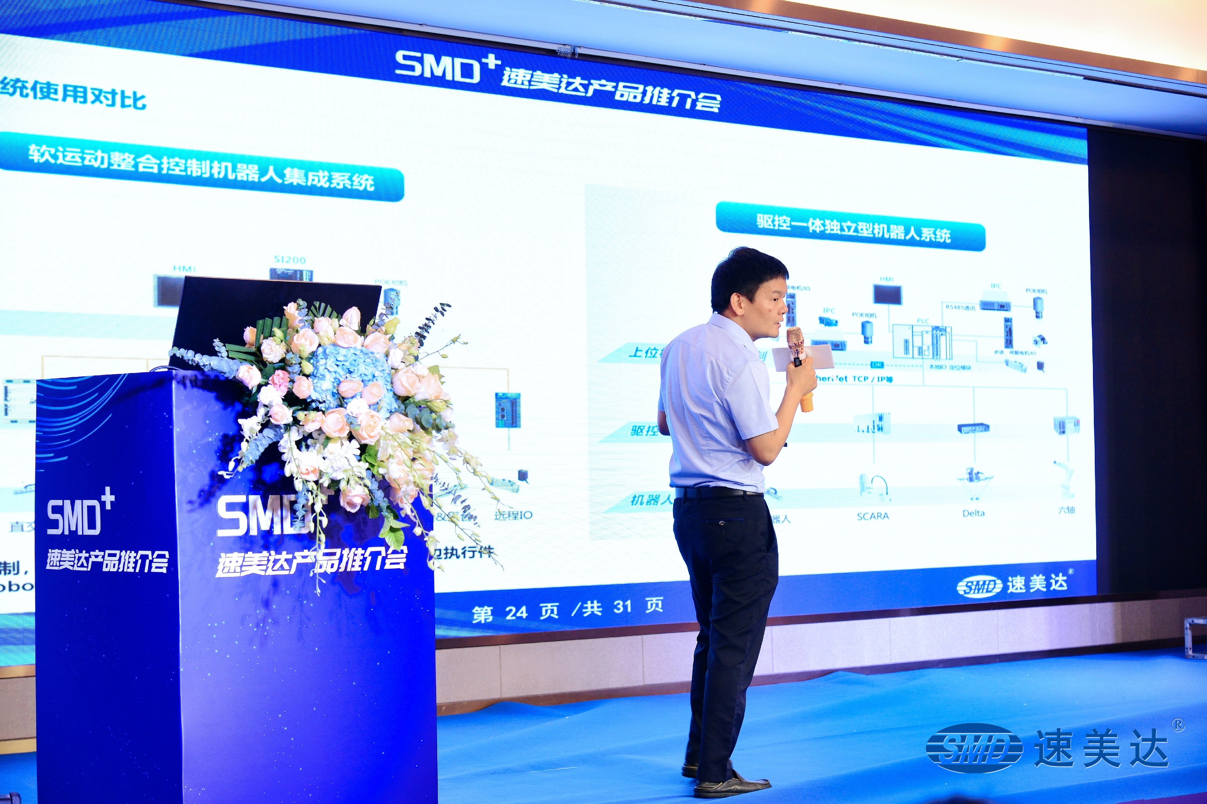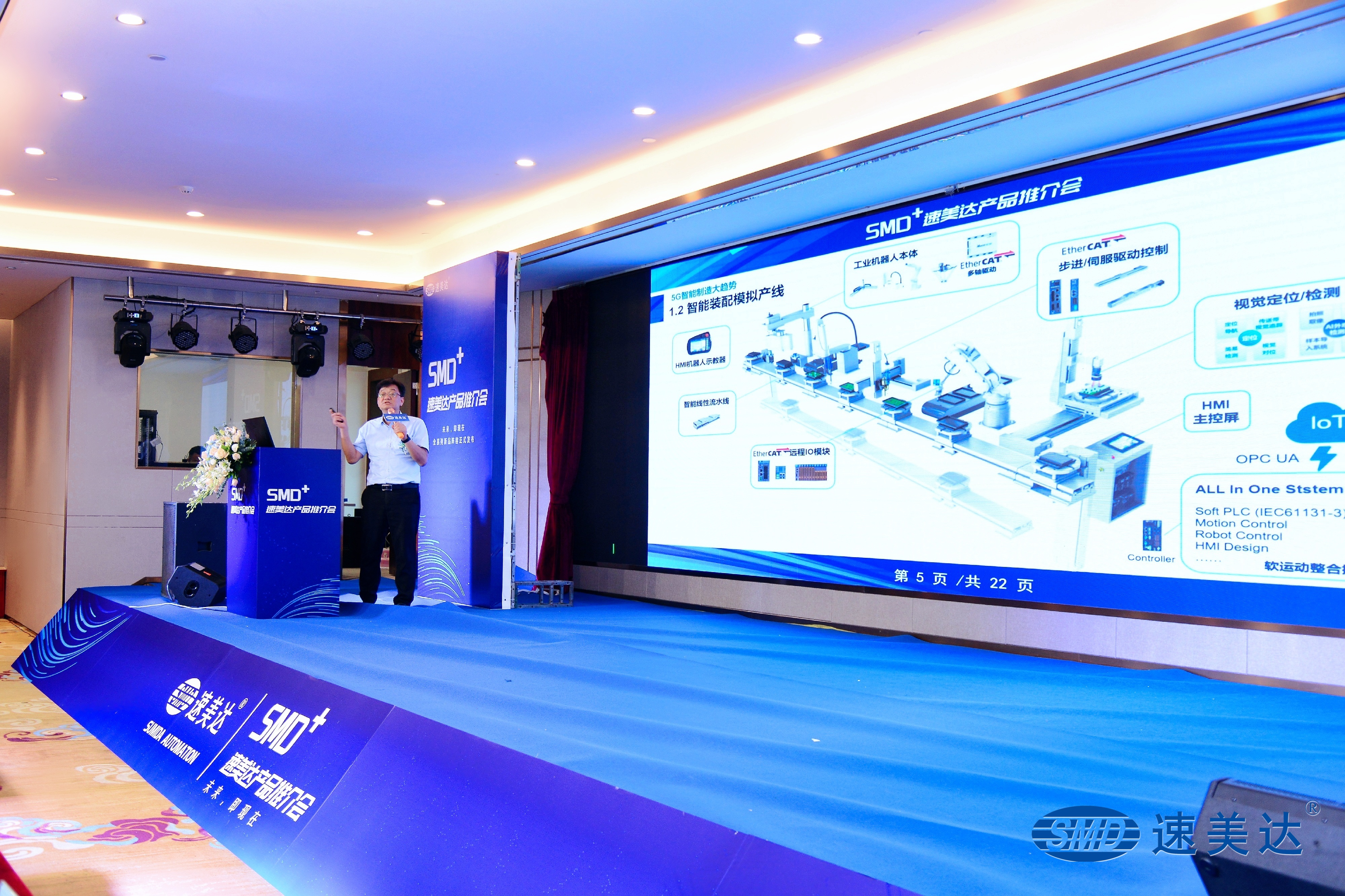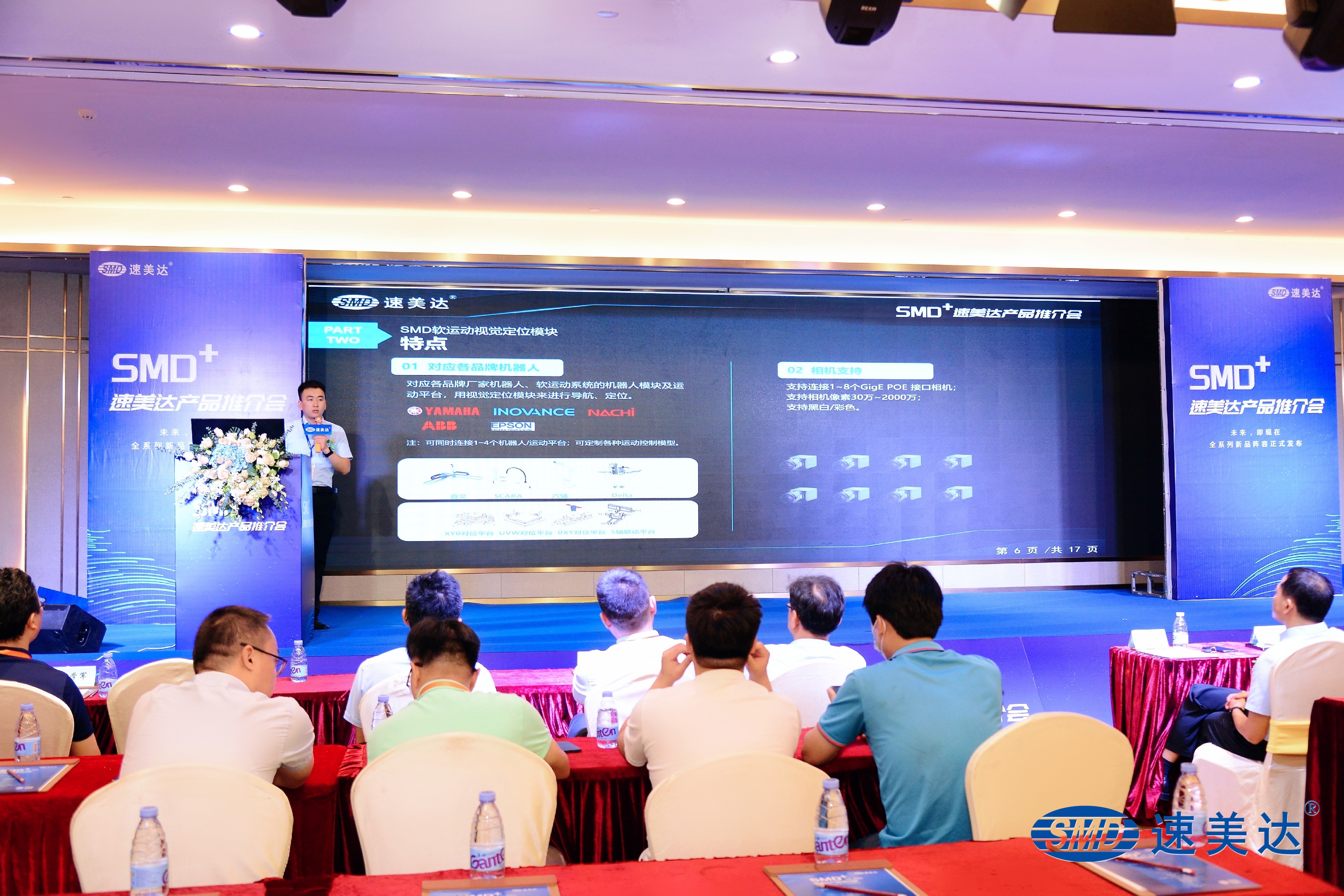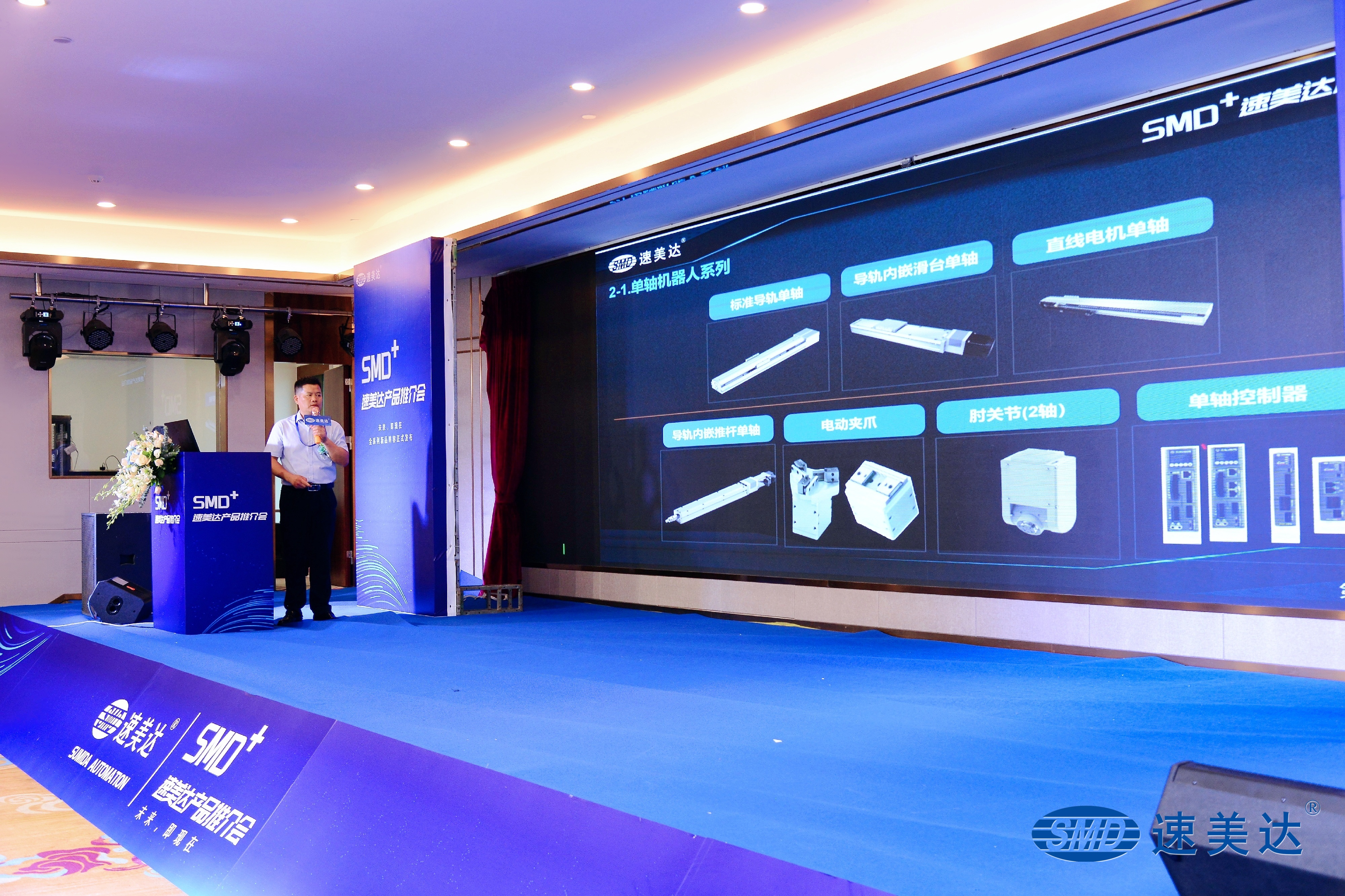 積淀22年,速美達(dá)全新產(chǎn)品上市。SMD-Studio軟運(yùn)動(dòng)整合控制系統(tǒng)、閉環(huán)步進(jìn)單軸機(jī)器人、AC交流伺服單軸機(jī)器人、SV系列新版通用視覺檢測(cè)系統(tǒng)在產(chǎn)品推介會(huì)現(xiàn)場(chǎng)正式發(fā)布。
